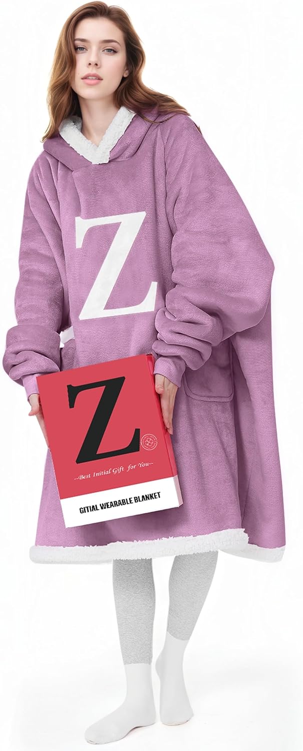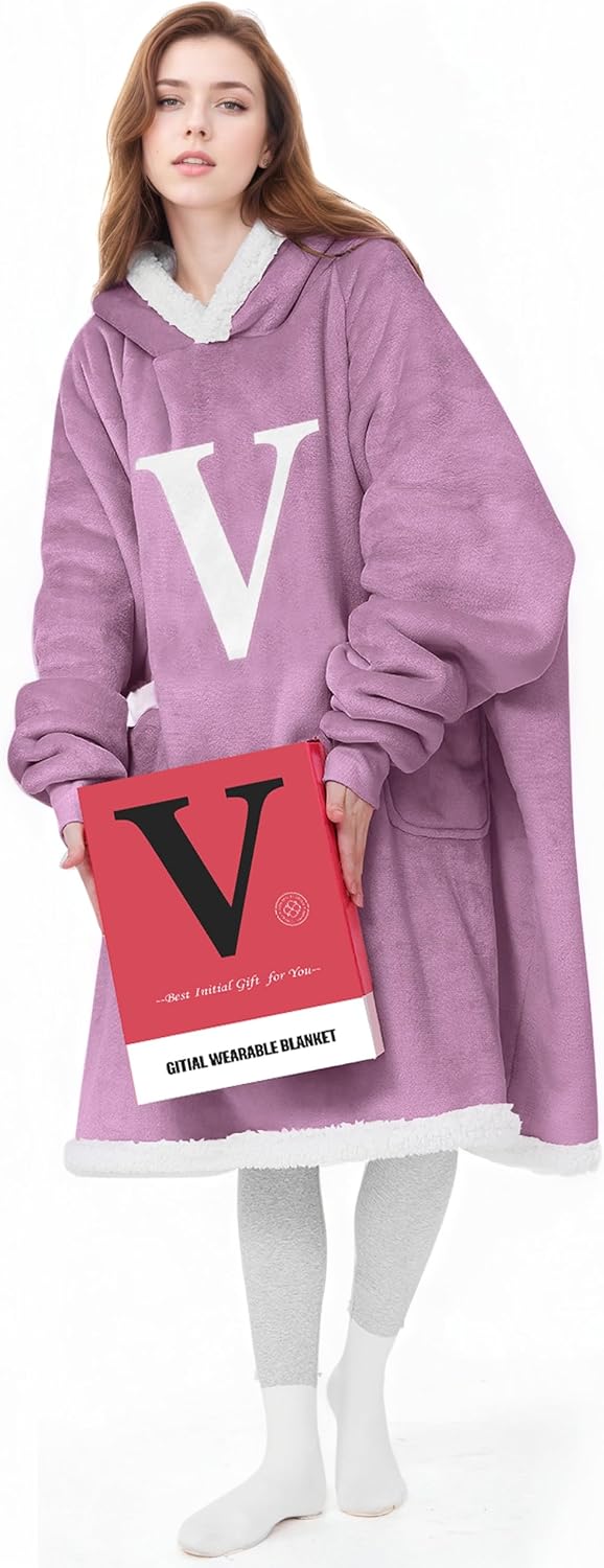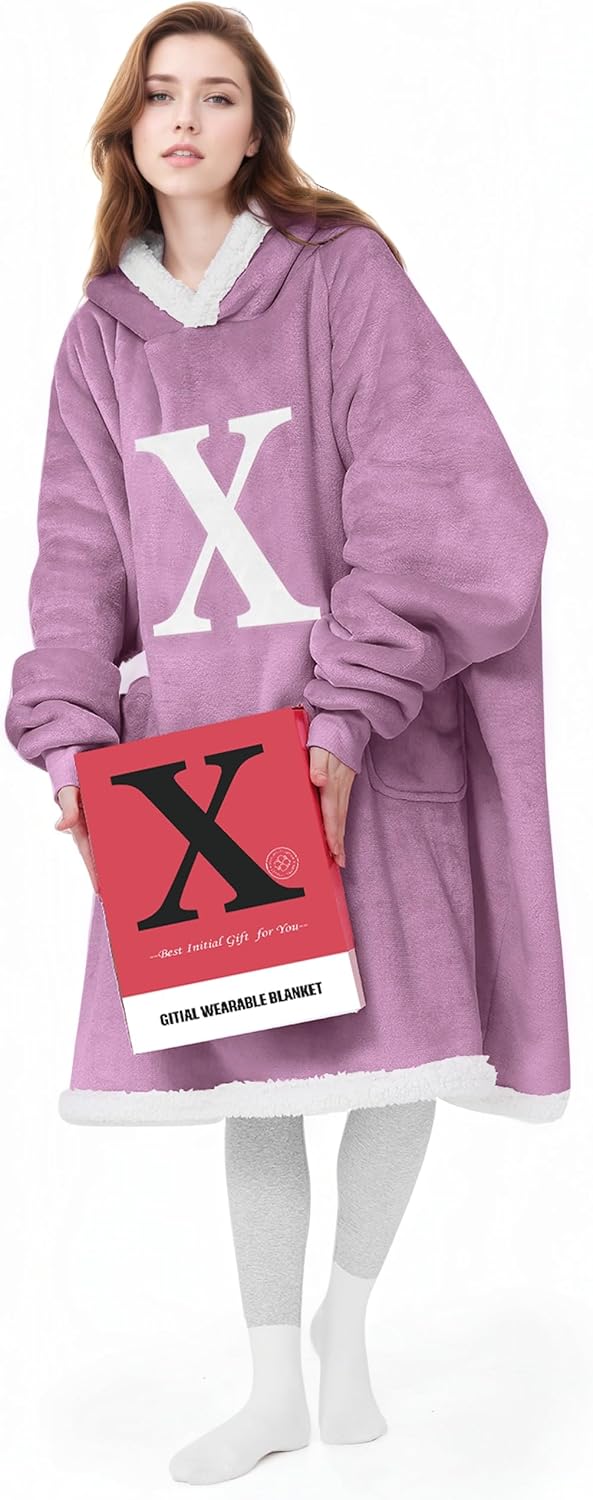 Comfort Meets Personalization: A Cozy Gift Idea.This winter, give your loved one this cozy warm gift of a practical and love-filled wearable blanket hoodie with initials, and let her have the top feeling of wearing a blanket. GITIAL blanket hoodies for women is crafted from soft flannel and fluffy sherpa, like in the warm embrace of a cozy sheep. The oversized hoodie blankets with sleeves is perfect for chilly evenings, whether you're lounging around home or enjoying the great outdoors.